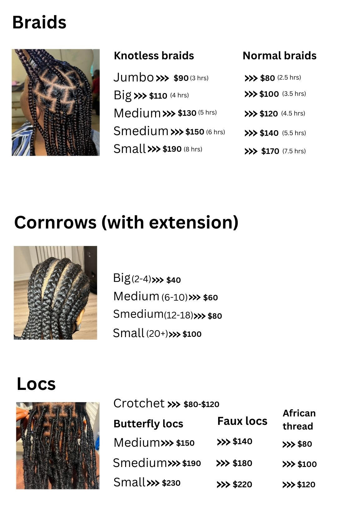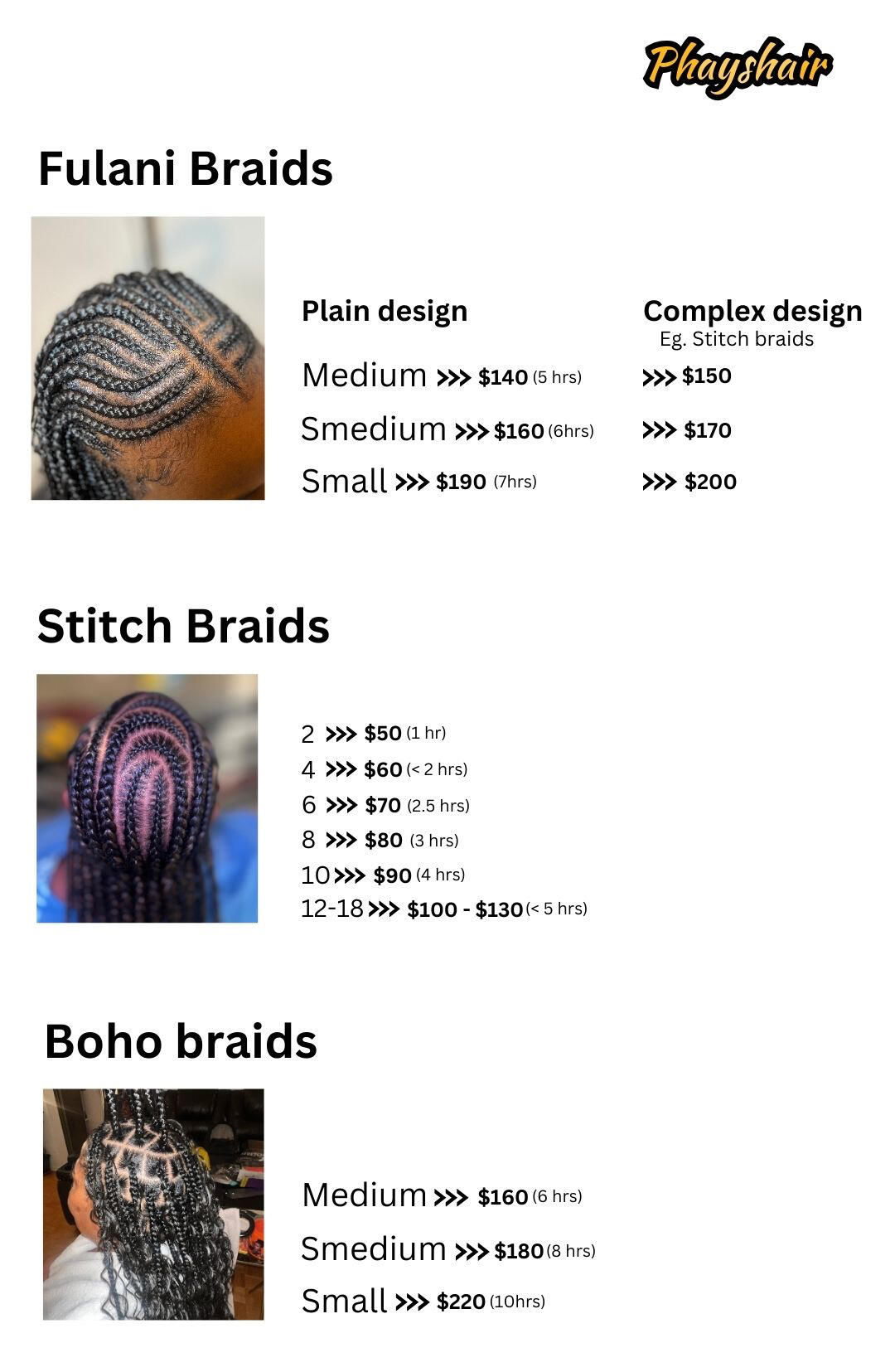 Styles and their prices